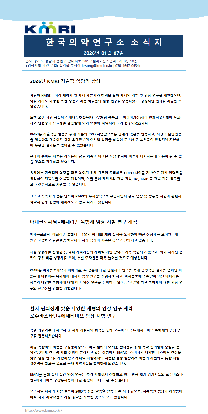 [소식지] 2026년도 01월 KMRI 소식지